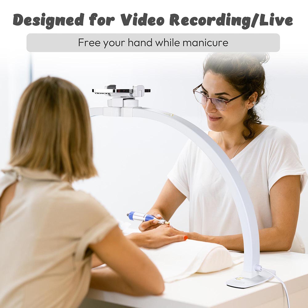 • Features a 360-degree rotatable phone holder to enable hands-free video recording or live streaming during manicure