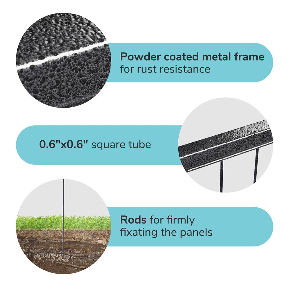- Rust-resistant & Sturdy Fence: Made of powder coated metal for rust resistance