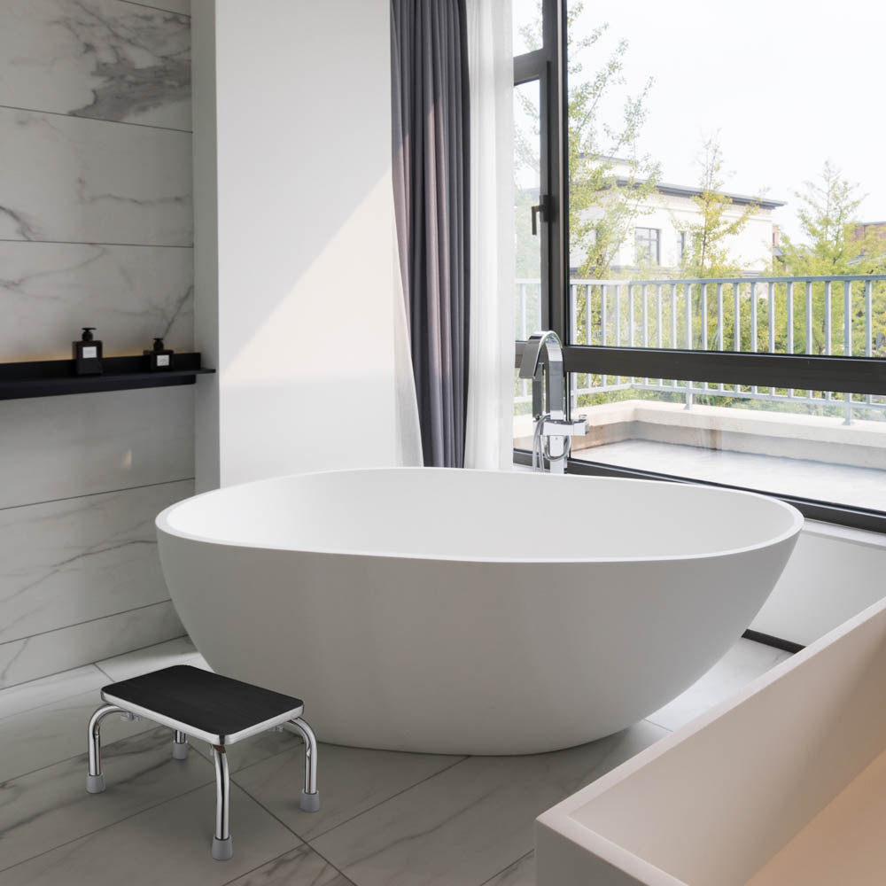 - Durable, chrome-plated steel frame can support up to 330 lbs.: heavier than the weight limit of average step stool