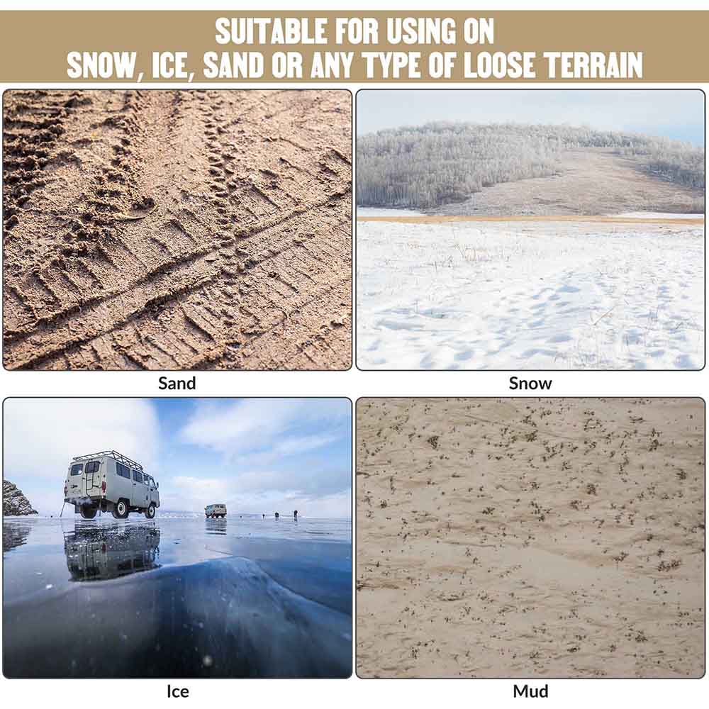 • 2 Pcs Tire Traction Mats are designed for using on loose terrain to give emergency traction to cars