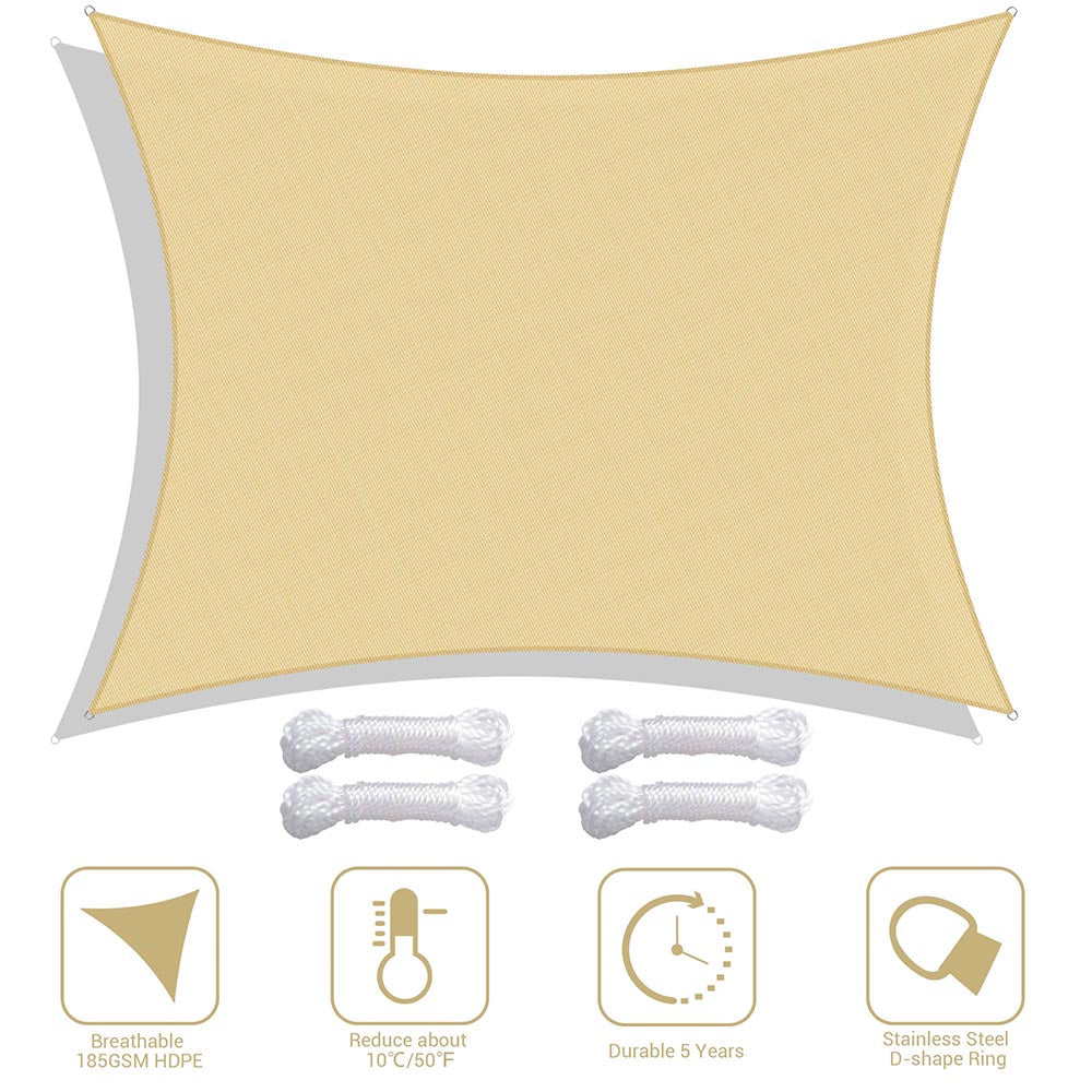 This 13'x10' Rectangle Sun Shading Sail Tarpaulins and Ropes with knitted fabric can block harmful sun rays yet remains totally unaffected by moisture and nature temperature extremes. The best way to expand your outdoor enjoyment without absorbing UV rays which cause serious sunburns or even skin cancers.