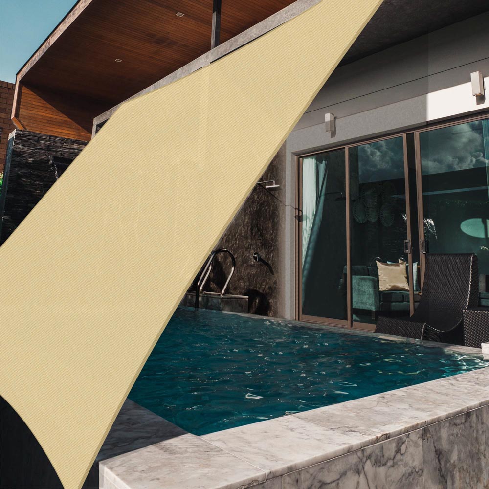 16' x 16' Square Sun Shading Sail Tarpaulins and Ropes with knitted fabric can block harmful sun rays yet remains totally unaffected by moisture and nature temperature extremes. The best way to expand your outdoor enjoyment without absorbing UV rays which cause serious sunburns or even skin cancers.