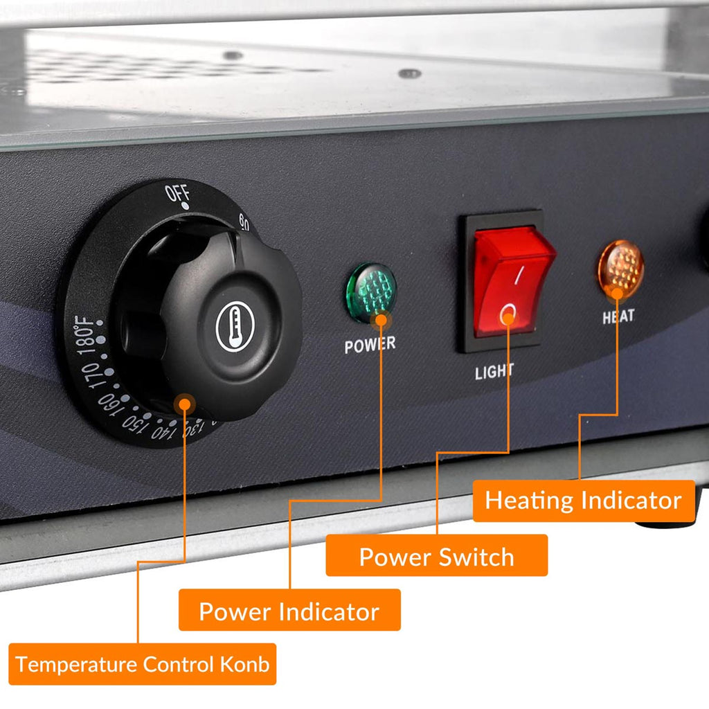 - 3-Tier Commercial Food Warmer offers large space with 3 shelves for warming and displaying different food